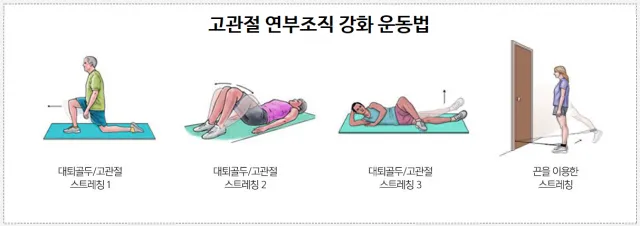 관절 주변 근육을 강화하는 규칙적인 운동과 스트레칭은 고관절 통증을 예방하고 줄이는 데 유용할 수 있습니다. 오랫동안 앉아있는 직장인이나 학생들은 스트레칭을 통해 관절 주변 근육과 힘줄을 이완시켜 긴장과 경직을 방지하며, 편안한 상태를 유지하는 데 도움을 받을 수 있습니다.