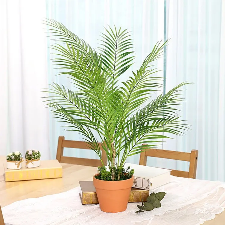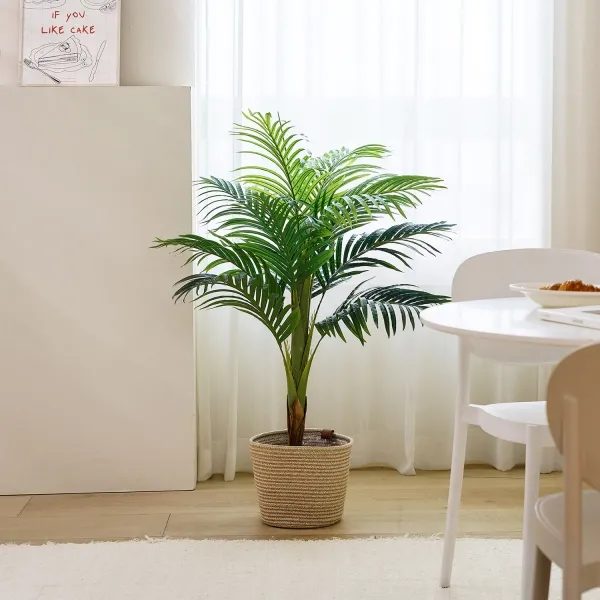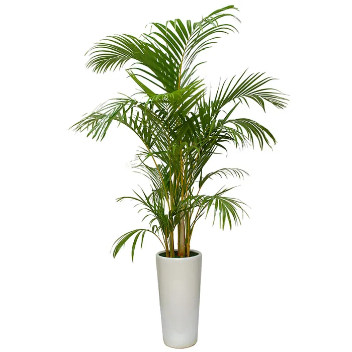 줄기와 잎줄기가 노랗기 때문에 '황금 야자'라고도 불리는 아레카야자는 우아한 관엽식물로 많은 이들의 사랑을 받고 있습니다. 포름알데히드 제거에 탁월한 효과를 보여 NASA가 최고의 식물로 꼽았으며, 1미터 이상의 높이로 자라 음이온을 발생시키고 실내 습도를 높일 수 있어 거실 인테리어로도 인기가 높습니다.