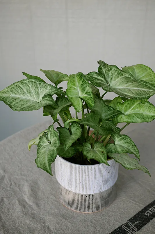 싱고니움은 작은 관엽식물로, 실내 식물 중에서도 포름알데히드 제거 효과가 가장 뛰어납니다. 포름알데히드 제거와 실내 습도 증가에 탁월해 거실에 두는 것이 좋으며, 독특한 잎 모양과 다양한 색상으로 시각적인 매력도 제공합니다.